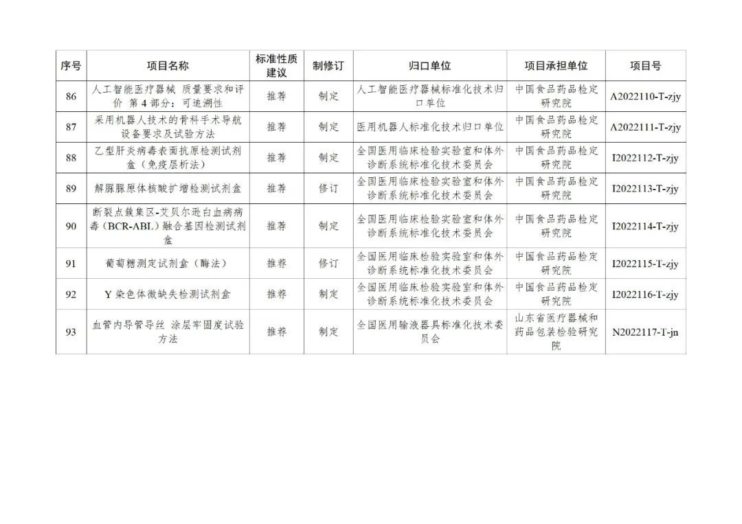 為貫徹國務(wù)院辦公廳《關(guān)于全面加強(qiáng)藥品監(jiān)管能力建設(shè)的實(shí)施意見》,落實(shí)《“十四五”國家藥品安全及促進(jìn)高質(zhì)量發(fā)展規(guī)劃》有關(guān)要求,按照國家藥監(jiān)局醫(yī)療器械行業(yè)標(biāo)準(zhǔn)制修訂工作部署,現(xiàn)將2022年醫(yī)療器械行業(yè)標(biāo)準(zhǔn)制修訂計(jì)劃項(xiàng)目印發(fā)給你們,有關(guān)要求通知如下: