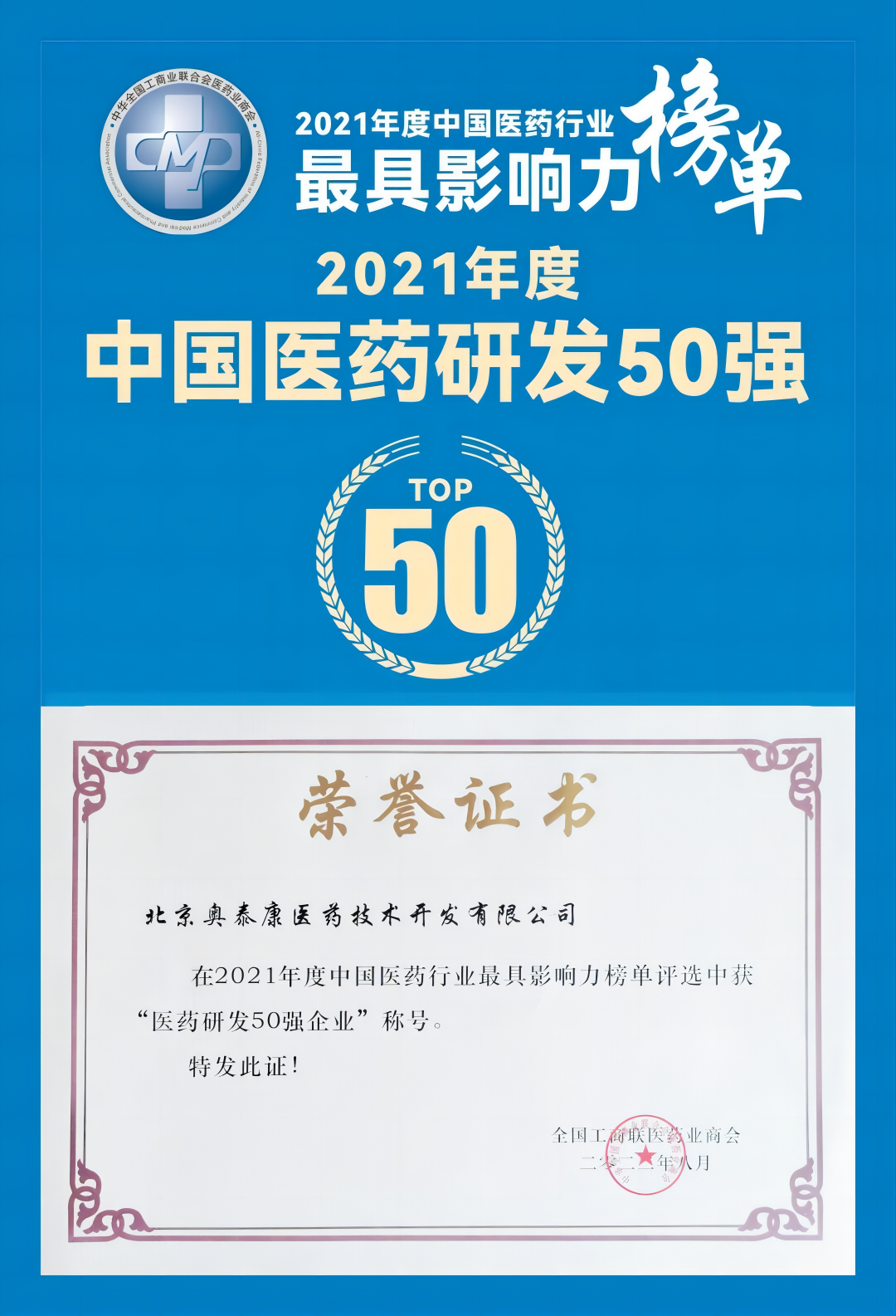 此次奧泰康被評(píng)為“2021年度中國(guó)醫(yī)藥行業(yè)最具影響力榜單-中國(guó)醫(yī)藥研發(fā)50強(qiáng)”,是一份榮譽(yù)也是一份責(zé)任。未來(lái),奧泰康將繼續(xù)秉持“為健康事業(yè)持續(xù)創(chuàng)造新的價(jià)值”的企業(yè)使命,通過(guò)提供MA全流程解決方案,持續(xù)推動(dòng)安全、有效和質(zhì)量可控的產(chǎn)品進(jìn)入市場(chǎng),保障人類生命健康。