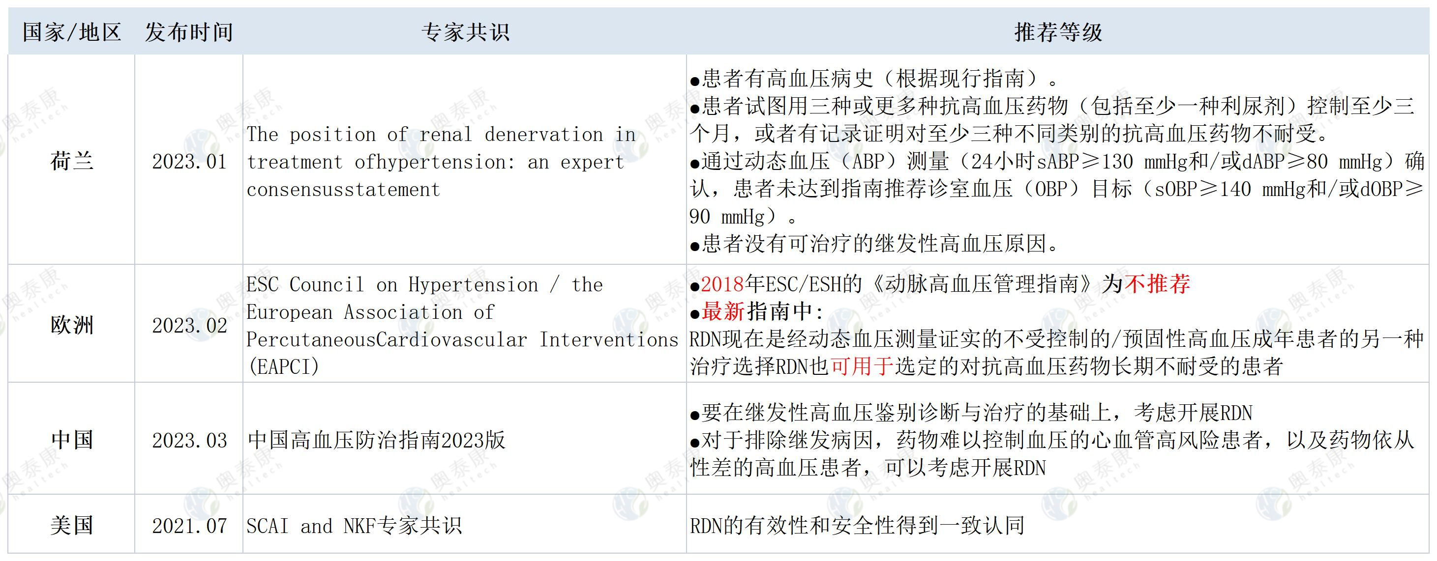 RDN的臨床應(yīng)用在10余年的發(fā)展過程中經(jīng)歷一波三折,早期美敦力Symplicity 系列產(chǎn)品的HTN-1、HTN-2、HTN-3臨床試驗(yàn)結(jié)果的不一致性,一度使行業(yè)動(dòng)搖(Symplicity HTN-3研究未能表現(xiàn)出理想的降壓效果),很多廠家陸續(xù)暫停研發(fā)和試驗(yàn),但隨后大量臨床研究通過嚴(yán)謹(jǐn)?shù)幕€評(píng)估、手術(shù)指征把控、強(qiáng)調(diào)假手術(shù)對(duì)照、改進(jìn)多電極消融導(dǎo)管,增強(qiáng)隨訪依從性等方面加強(qiáng)改進(jìn),得到令人欣慰的結(jié)果,使近年來RDN技術(shù)再次獲得關(guān)注,美國(guó)、歐洲、中國(guó)等均發(fā)布專家共識(shí),肯定了RDN降低血壓的有效性和安全性。
