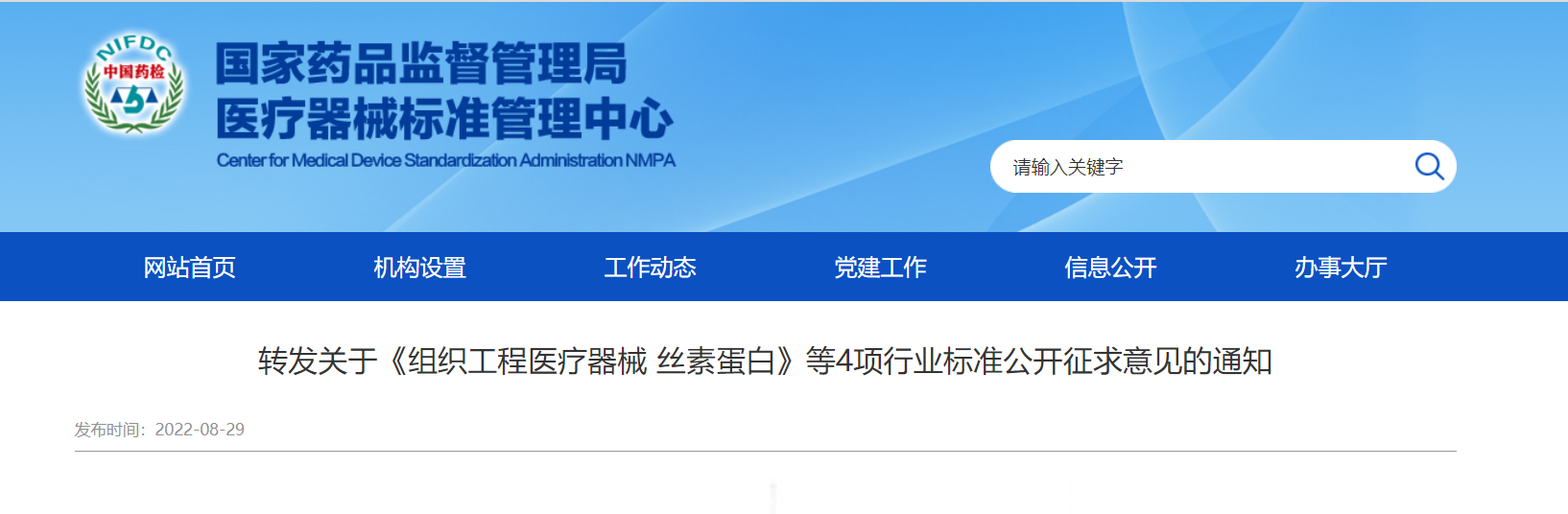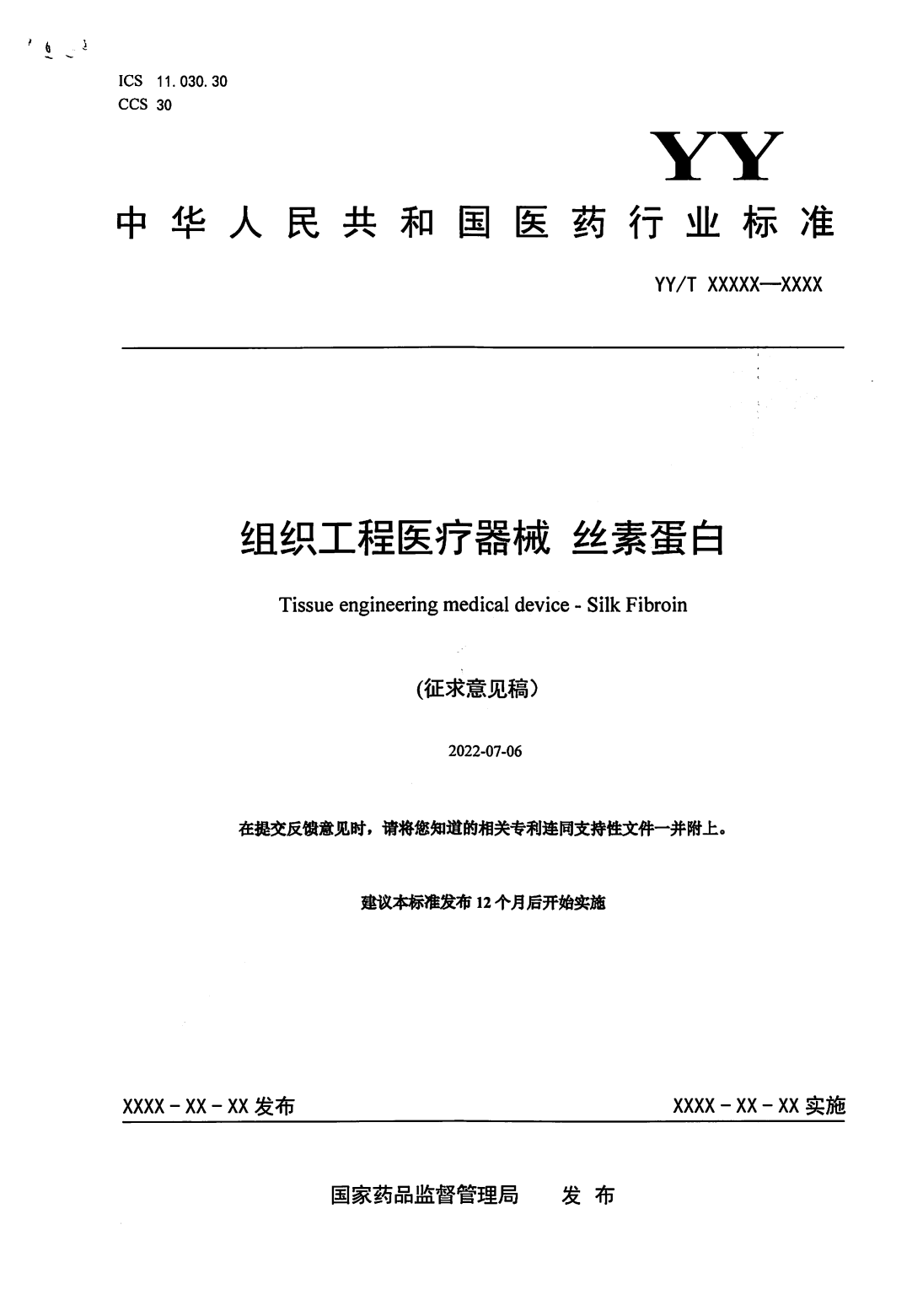隨著絲素蛋白醫(yī)療器械產(chǎn)品的增加,對(duì)這一材料的生產(chǎn)制備、質(zhì)量控制等提出了要求。相對(duì)于產(chǎn)業(yè)的迅速發(fā)展,絲素蛋白相關(guān)標(biāo)準(zhǔn)在國(guó)際國(guó)內(nèi)仍處于空白。由于標(biāo)準(zhǔn)的缺乏,各絲素蛋白企業(yè)在企業(yè)標(biāo)準(zhǔn)制定過(guò)程中無(wú)統(tǒng)一的標(biāo)準(zhǔn)參考依據(jù),限制了絲素蛋白醫(yī)療產(chǎn)業(yè)的高質(zhì)量發(fā)展。目前,為提高絲素蛋白材料的質(zhì)量與安全性,為科學(xué)監(jiān)管提供支撐,由全國(guó)外科植入物和矯形器械標(biāo)準(zhǔn)化技術(shù)委員會(huì)組織工程醫(yī)療器械產(chǎn)品分技術(shù)委員會(huì)歸口的《組織工程醫(yī)療器械絲素蛋白》已形成征求意見(jiàn)稿[5],并于2022年8月23日-2022年10月24日期間公開(kāi)征求意見(jiàn)。