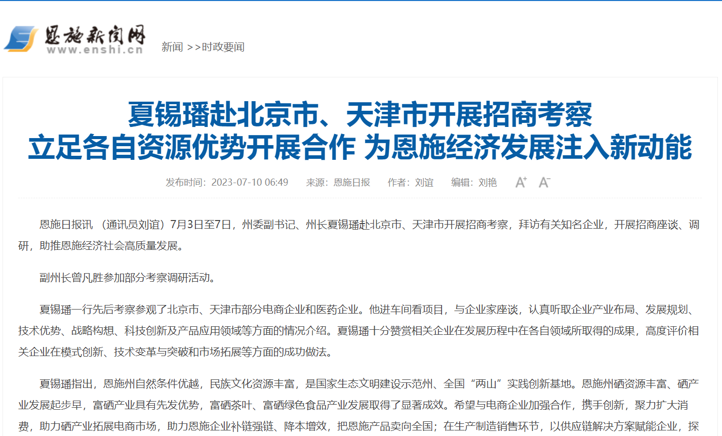 恩施州領(lǐng)導(dǎo)蒞臨考察