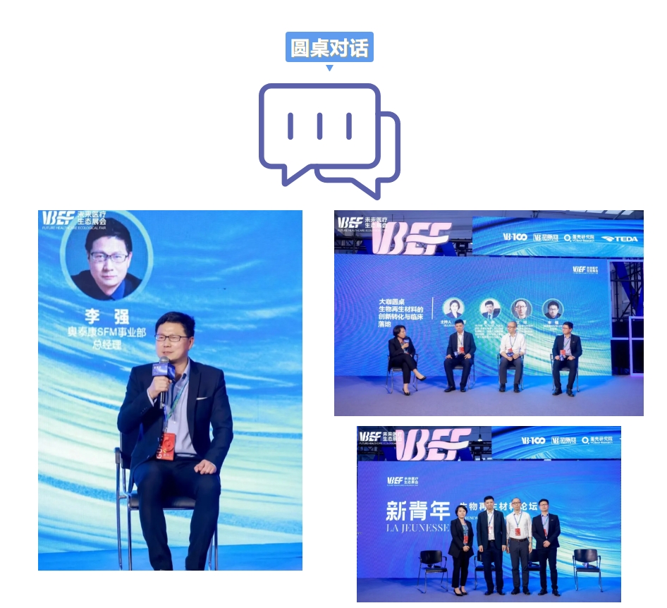 奧泰康SFM事業(yè)部總經(jīng)理李強(qiáng)在課題分享結(jié)束后,受邀參與了圓桌討論環(huán)節(jié),針對(duì)“生物材料的創(chuàng)新轉(zhuǎn)化與臨床落地”這一主題與金巖教授和艾華教授展開了學(xué)術(shù)探討。