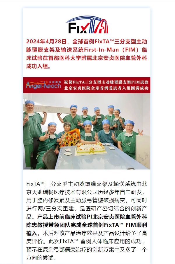 MA里程碑 全球首例北京天助瑞暢FixTA?三分支型主動(dòng)脈覆膜支架及輸送系統(tǒng)FIM臨床試驗(yàn)成功入組編者薦語(yǔ):
