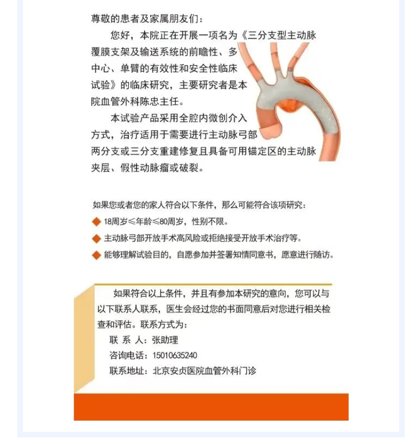 近期,由北京天助瑞暢醫(yī)療自主研發(fā)且具有完全自主知識(shí)產(chǎn)權(quán)的三分支型主動(dòng)脈覆膜支架及輸送系統(tǒng)FIM臨床試驗(yàn),由首都醫(yī)科大學(xué)附屬北京安貞醫(yī)院成功完成全球首例受試者入組,奧泰康負(fù)責(zé)臨床試驗(yàn)服務(wù)。