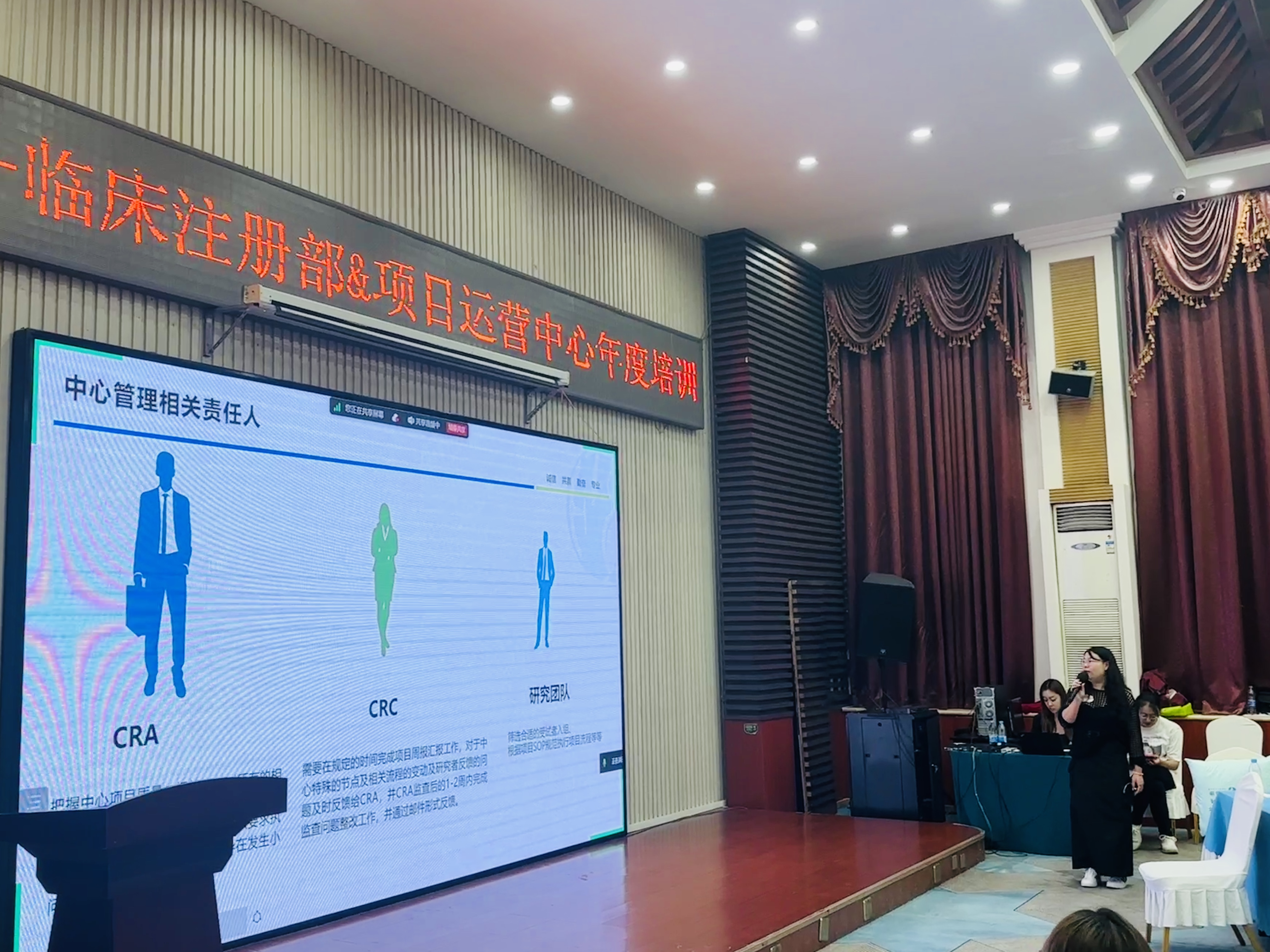 主題分享環(huán)節(jié),由來自臨床的5位講師圍繞“CRA手冊解讀、中心管理與中心績效、受試者全周期管理及重要數(shù)據(jù)指標(biāo)管理、監(jiān)查問題(數(shù)據(jù)清理)和質(zhì)控問題的關(guān)閉能力、相關(guān)方的溝通和協(xié)作”五個主題展開分享。