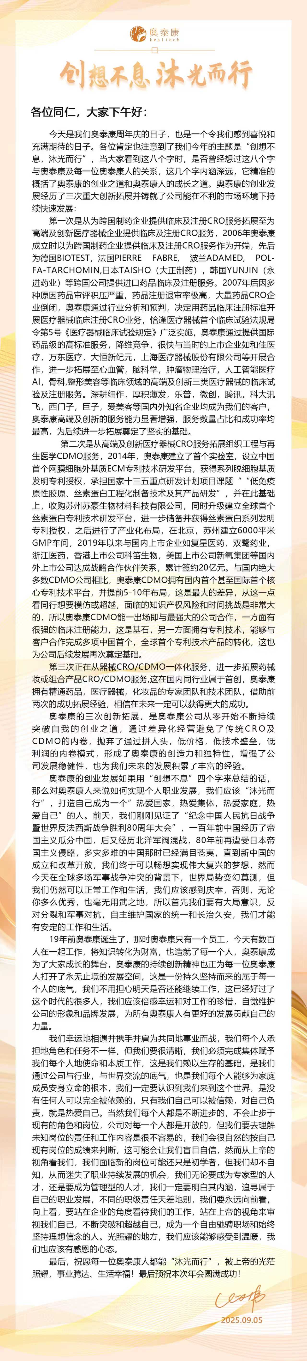 創(chuàng)想不息·沐光而行,2025奧泰康「集團周年慶」暨頒獎典禮落幕金秋禮贊,華章日新